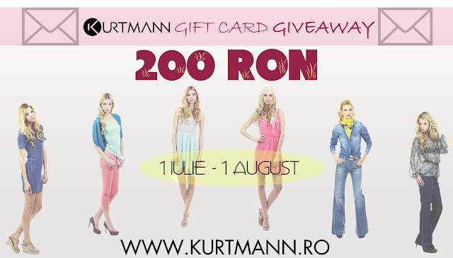 In iulie blogul meu face jumatate de an. De atunci parca a trecut asa de mult timp, am descoperit o comunitate de blogerite foarte draguta si am descoperit si oameni cu suflet mare care iti sunt alaturi. Cel mai mult ma bucura ca am ajuns sa imi citeasca cineva postarile si sa mai lase si comentarii , ma bucur enorm cand vad ca va exprimati parerea. Ca sa sarbatoresc toate aceste lucruri minunate dau drumul unor concursuri. Kurtmann.ro au fost foarte draguti si sponsorizeaza concursul cu un gift card in valoare de 200 Ron si credeti-ma ca aveti o multitudine de produse de unde alege si la preturi foarte bune.